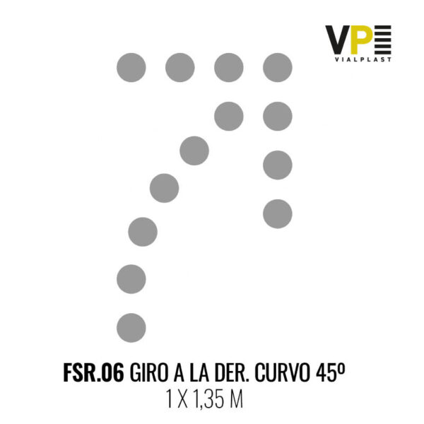 Fsr.06 – Incluye tachas demarcatorias que forman un Giro A La Derecha Curvo de 45°